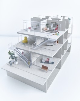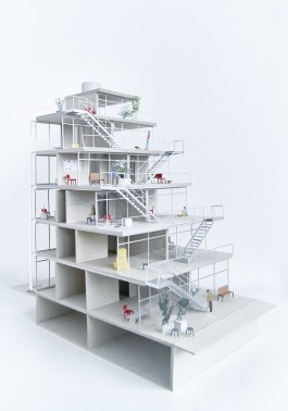 Forced into this almost autistic situation the project is driven by a set of core questions: How can a maximum of communal exchange and encounter be generated through architecture while adhering to the tight space constraints? And this, if possible, in an informal and casual appearance? And: How much autonomy is the building given vis-à-vis its unknown context?