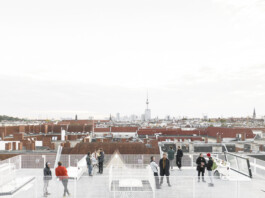 As part of our roof extension project in Berlin, we are currently building a large entirely prefabricated roof terrace that not only offers spectacular views across the city but more importantly is designed as a communal platform and social infrastructure connecting the housing units underneath as well as their inhabitants.
