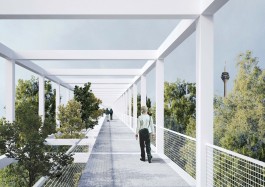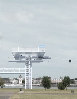 A 4km long elevated path, without any visible function, without any recognisable programme – pure infrastructure – lays itself as a closed frame around the city centre of Düsseldorf. Raised from the street, the elevated path creates a new level in the city, a cartesian reference system that allows all objects in the city to relate to each other. By enlarging the perspective of the flâneur on the city - a phenomenon known in landscape theory that a certain distance of the viewer is necessary to be able to combine different spatial elements in the "landscape view" – a new relationship to the urban context and its cultural institutions can be established: Proximity through distance.
